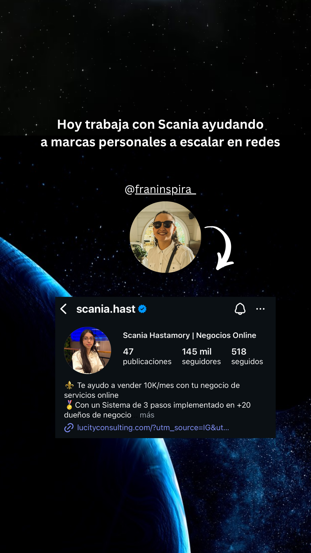 "Literalmente un antes y después es entrar al instituto. Confirmo que es la única y mejor comunidad para aprender sobre habilidades digitales, ventas, marketing digital y el mundo de los negocios en redes sociales. Las puertas que se abren son muchísimas, es más que un trabajo remoto. Si tuviera que dar mi primer paso al mundo online lo volvería hacer con ustedes sin pensarlo porque sé que voy a tener todas las herramientas, conocimientos y los resultados que no hay en otro lado"